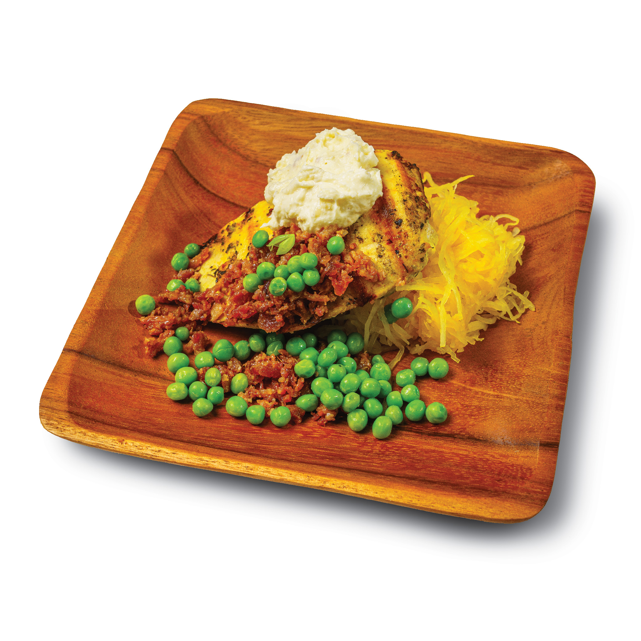 Chicken Breast Extra-Virgin Olive Oil Pork Bacon Onions Cream Garlic Parmesan Cheese Peas Basil Black Pepper Spaghetti Squash